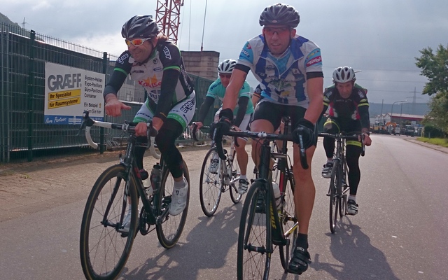 Gute Stimmung beim Rennradfahren.