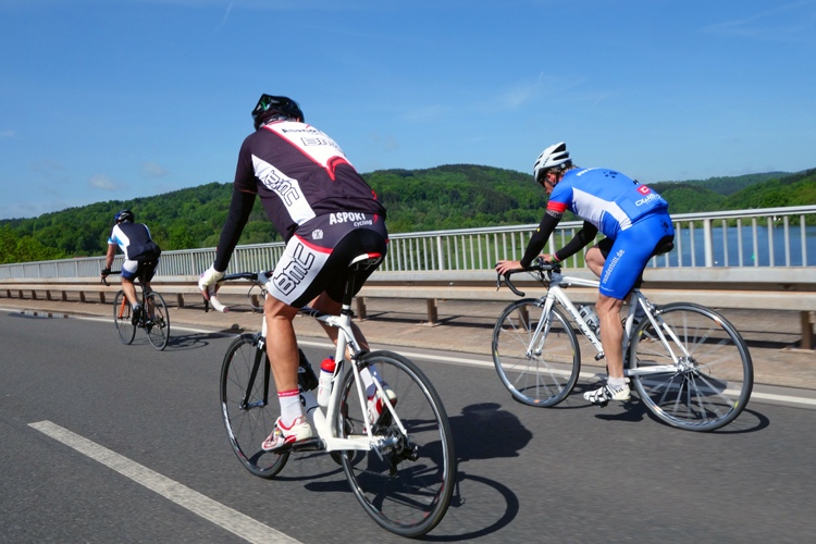 Aber heute Morgen war ich wirklich gespannt wie das Wetter sein wird. Letzten Sonntag war ja nur Regen, den ganzen Tag. Exakt um 8.00 Uhr hat der Wecker geklingelt. Ein vorsichtiger Blick durch die Jalousien am Fenster in Erwartung wie es aussieht. Sonne! Perfekt! Und die Wetterstation lockte mit guten 10 Grad. Das Frühstück war nur noch Formsache. Um 9.00 Uhr ging es los und ich hatte für dieses Jahr erst das zweite mal die Runde über den Hoxberg bis nach Saarlouis zu den Fordwerken absolviert. Endlich. Es lief auch ganz gut. In Körprich waren auch die Kollegen am Start. Chris und Nikolas warteten schon. Dann rollte Albert mit seinem neuen Crosser an. Ein Crosser nach neuestem Stand der Rennradtechnik. Elektronische Schaltung, hydraulische Scheibenbremsen und eine Leistungsmessung in der Kurbel. Hightech eben. Als wir dann los fuhren kam noch ein seltener Gast dazu. Gerard, vor Wochen endlich in Rente gekommen. Man merkte es, er hatte guten Druck auf dem Pedal für sein Alter. Mein Fazit, er hat jetzt wohl mehr Zeit zum Training. Aber alle Kollegen hatten heute guten Druck auf dem Pedal. Jeder in der Führungsarbeit machte gut Tempo. Am Ende hatten wir einen 33 er Schnitt. Mir wird Angst und Bange wo das im Sommer noch hinführt. Nicht, dass wir mal in eine Geschwindigkeitskontrolle geraten. Wäre ja mal interessant wie das ausgehen würde. 😉 Jedenfalls hat es mal wieder richtig Spaß gemacht mit den Jungs durch die Landschaft zu rauschen.