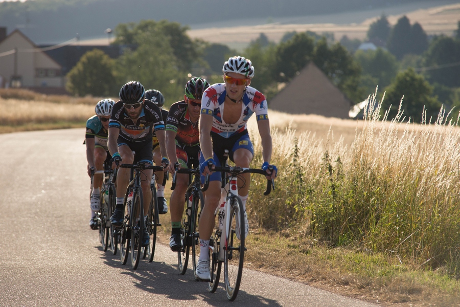 Nach den weiteren Rennen der Schülerklassen kam es gegen Abend zum Höhepunkt der Veranstaltung, dem Rennen der A/B Amateure. Am Start waren das Kontinental Team Bike Aid und weitere namhafte Teams. Natürlich stand auch Thorsten Resch vom RV Falke am Start. Die ersten Runden war das große Fahrerfeld komplett vereint und das Tempo extrem hoch. Ziel war es, das Feld zu verkleinern. Maßgeblichen Anteil hatten die größeren Teams an dieser Tempoarbeit, dass dadurch das Feld in zwei Teile zerfiel. Thorsten Resch fand sich dann auch nach einem technischen Defekt in der zweiten Gruppe wieder. Er leistete immer wieder die Nachführarbeit und konnte die Lücke fast wieder schließen. Aber nur fast. Leider hatte er keinerlei Unterstützung und stellte sein Engagement langsam ein. Alleine ist das nicht zu schaffen, zumal an der Spitze die Teams immer wieder gemeinsam das Tempo anzogen. Keiner der Mitfahrer wollte helfen, das Loch zu schließen.