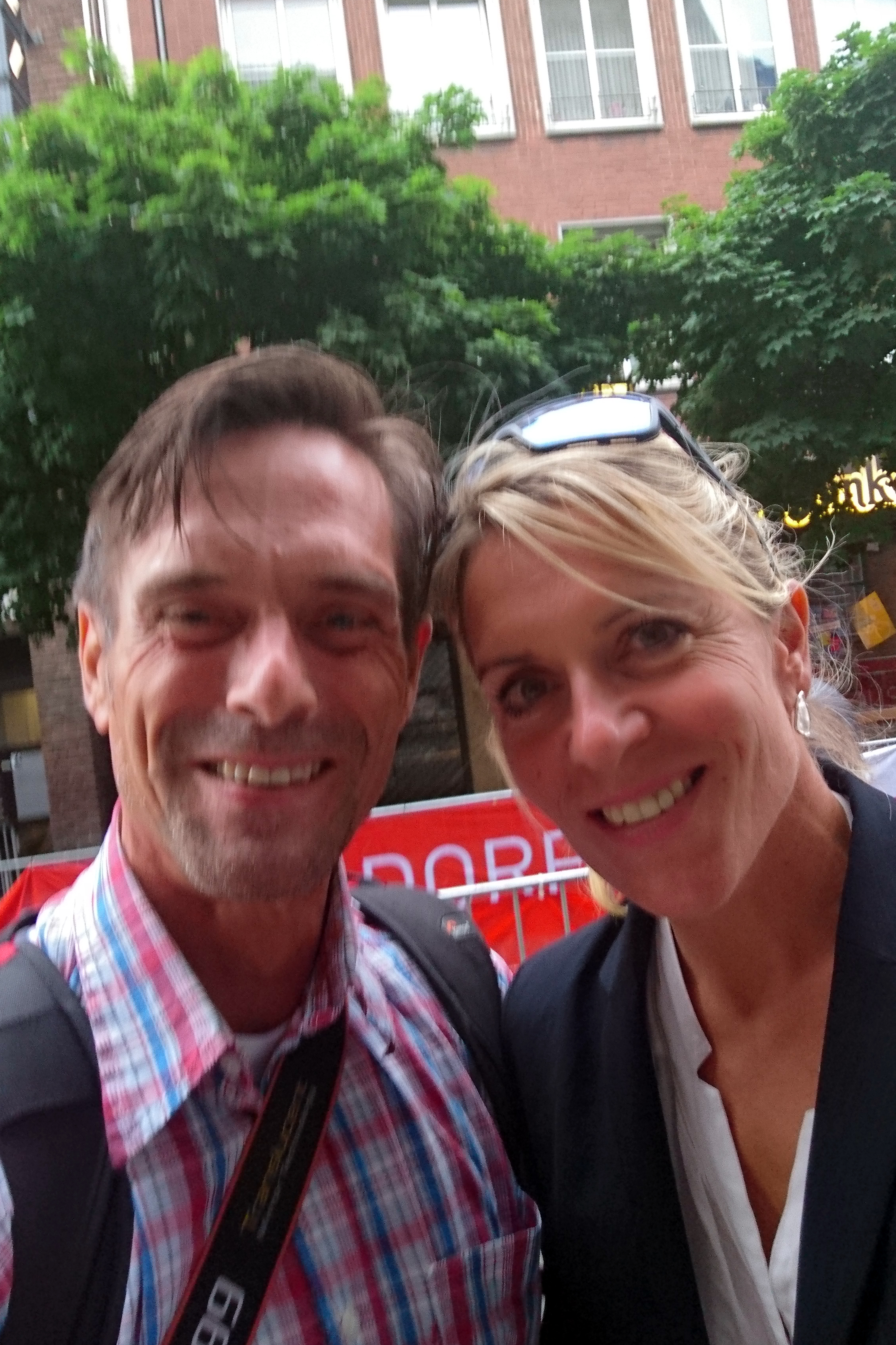 So beim gehen fiel mir eine sehr sportliche Dame in zivil mit einem Rennrad auf, was sie neben sich her schob. “Das ist doch die Hanka Kupfernagel” dachte ich und bis es im Kopf ankam war sie schon weg. Ich rief noch, aber sie war weg. Mist! Also weiter. Und da, auf der anderen Seite der Absperrung tauchte sie wieder auf. Jetzt aber schnell. Ich bin lächelnd auf sie zu gegangen und hatte ganz höflich nach einem Selfie mit ihr gebeten. Sie sagte auch direkt freundlich zu und ein Selfie war gemacht. Ein bisschen über ihre sehr beeindruckende Radsport Karriere geredet und die Wege trennten sich wieder. Eine sehr sympathische große Sportlerin.